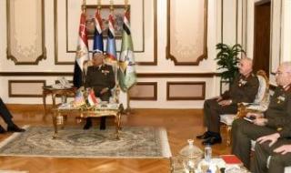 جانب من لقاء رئيس وزراء قطر مع وزير الإعلام