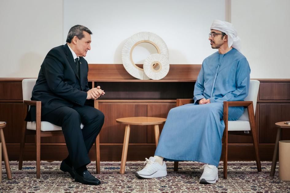 جرى خلال اللقاء بحث تعزيز العلاقات الثنائية ومسارات التعاون بين دولة الإمارات وتركمانستان في عدة مجالات منها الاقتصادية والتجارية والاستثمارية والطاقة.