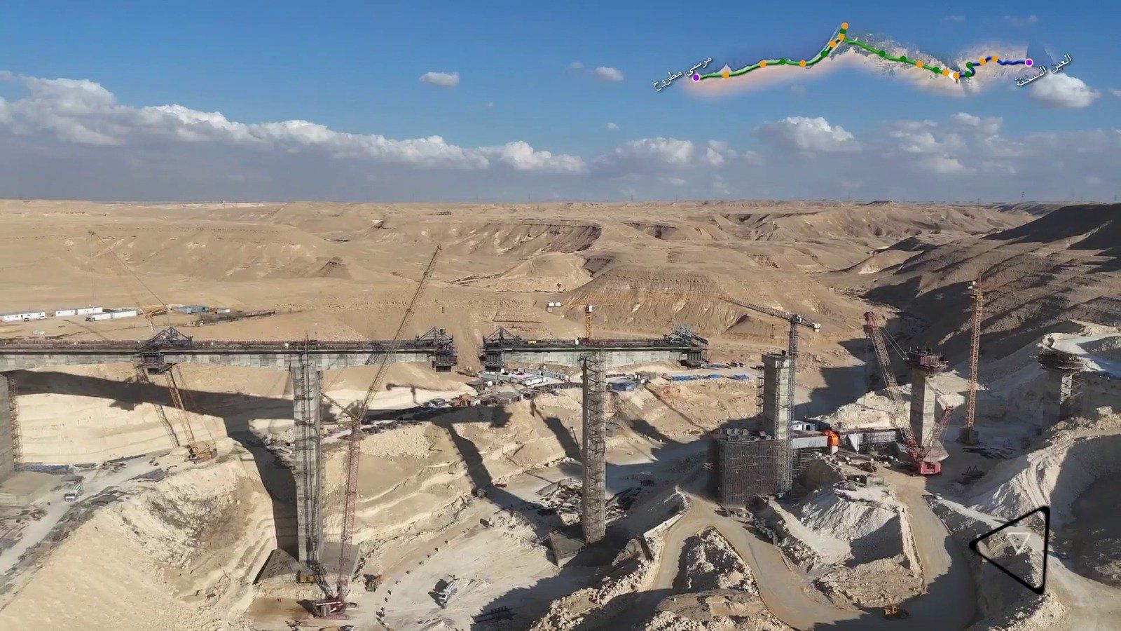ويتم تنفيذ الهيكل العلوي باستخدام نظام العربات المتحركة بارتفاع 8 أمتار على ارتفاع 80 مترا، بطول 340 مترا، وهناك ثلاث محاور من الباكيات المعدنية طول كل محور 60 مترا ووزن إجمالي 3 آلاف طن، سيتم تنفيذها بالرفع بالأوناش العملاقة.