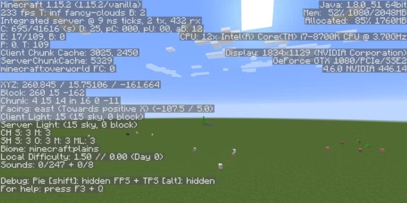 ستظهر لك مجموعة من المعلومات المتعلقة بعالمك داخل Minecraft، بما في ذلك موقعك الحالي داخل دورة النهار والليل.