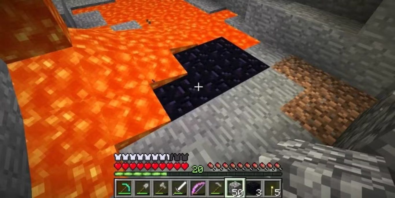 إذا وجدت Obsidian في الكهوف، فعليك أن تكون حذرًا لأن كل كتلة عادة ما يكون تحتها حمم بركانية. لذلك، عند كسر الكتلة، من المحتمل أن تسقط مباشرة في الحمم البركانية وتحترق.