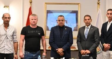 الخميس، 09 يناير 2025 10:28 ماستقبل الدكتور خالد مبارك، محافظ جنوب سيناء، بمكتبه في مدينة شرم الشيخ اليوم، السيد نيستروف دينيس فلاديميروفيتش، مؤسس نوادي “AST” العالمية للكرة الطائرة.