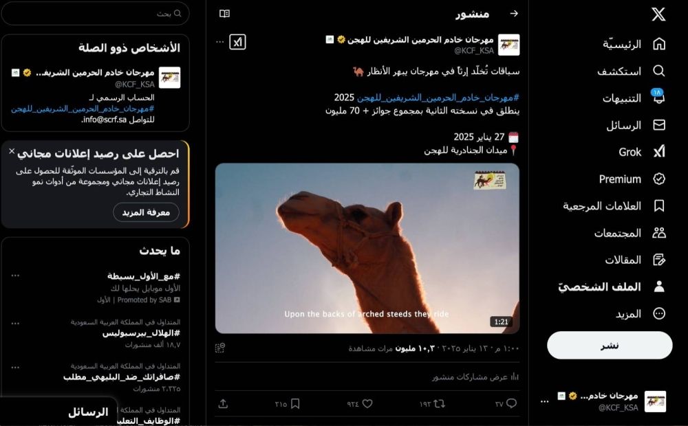 أما بقية حسابات المهرجان، فسجلت هي الأخرى أرقاما مميزة في التفاعلات والمشاهدات، تجاوزت حدود المملكة لتسجل انتشارا في دول الخليج وعدد من الدول العربية.
