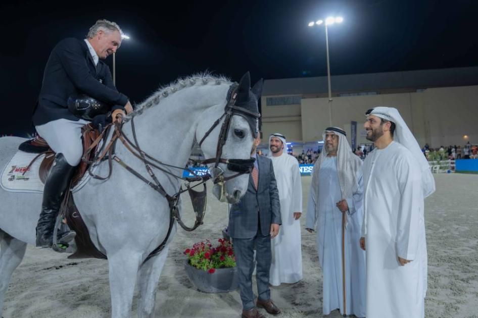 توّج سمو الشيخ سلطان بن أحمد بن سلطان القاسمي نائب حاكم الشارقة، أمس الأحد، الفارس لويس فيليبي مع جواده «سييرا دو بيدروكس زد» بكأس جائزة لونجين الشارقة، في ختام فعاليات بطولة كأس حاكم الشارقة الدولية لقفز الحواجز من فئة الخمس نجوم، وذلك في نادي الشارقة للفروسية والسباق.