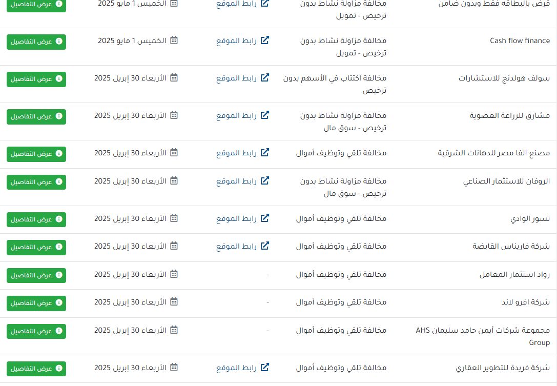 وكانت الهيئة العامة للرقابة المالية، قد أطلقت تحذيرات صارمة للمواطنين بعدم الانسياق وراء دعوات جهات غير مرخصة على منصات التواصل الاجتماعي، تدعو إلى الاستثمار أو الحصول على التمويل بالمخالفة لأحكام القوانين المنظمة لهذه الأنشطة، مع التأكيد على خطورة التعامل مع تلك الجهات غير المرخصة التي قد تؤدي إلى خسائر مالية جسيمة للمواطنين وعمليات احتيال.