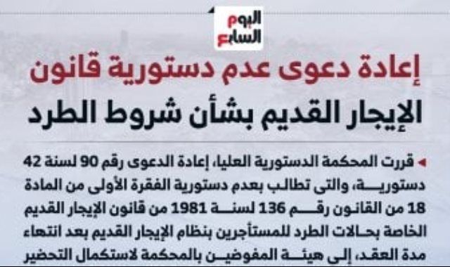 ومن بين هذه الدعاوى، الدعوى رقم 90 لسنة 42 دستورية، التي تطالب بعدم دستورية الفقرة الأولى من المادة 18 من القانون رقم 136 لسنة 1981 من قانون الايجار القديم الخاصة بحالات طرد المصريين وغير المصريين المستأجرين بنظام الإيجار القديم بعد انتهاء مدة العقد.