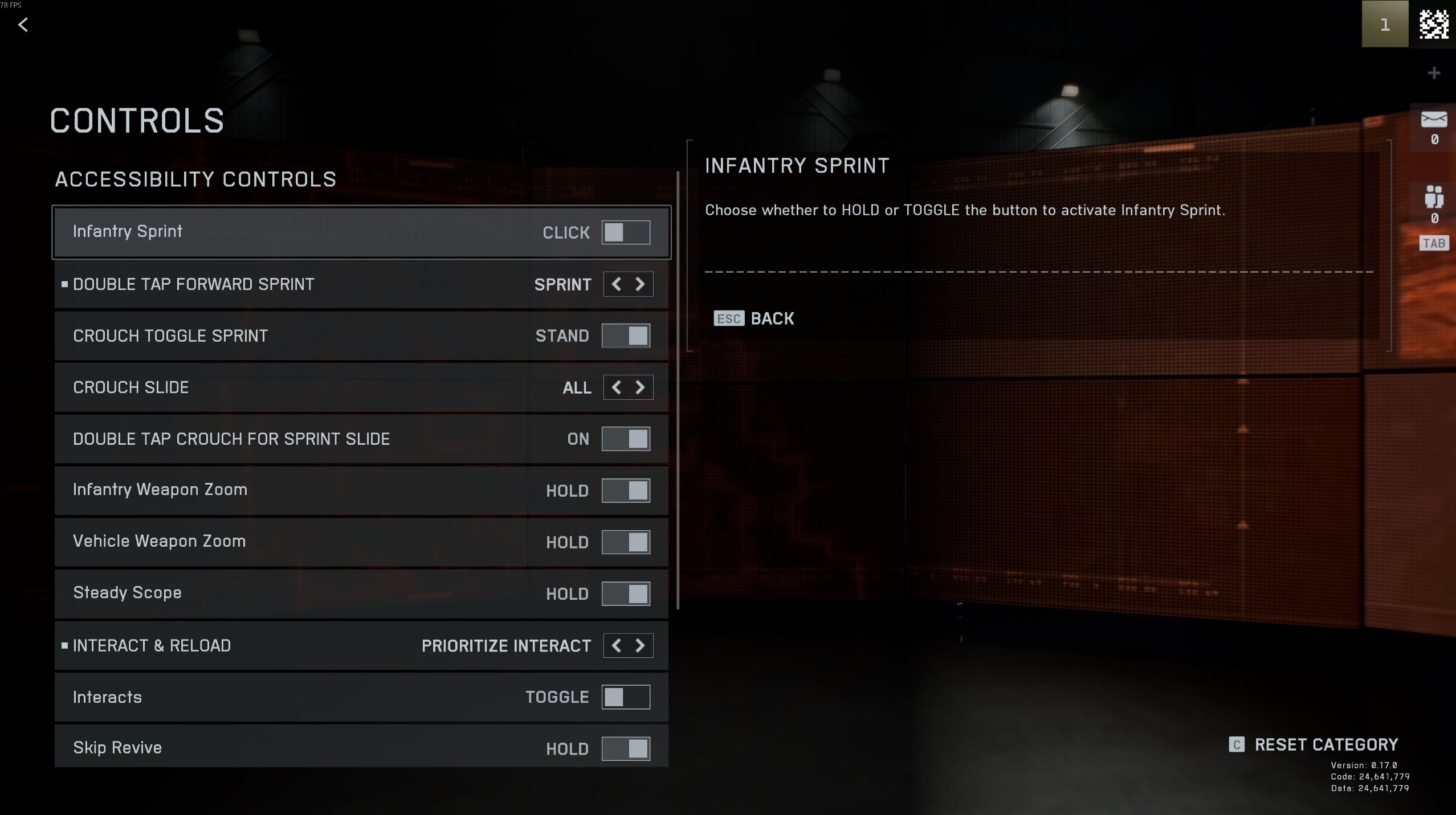 - Infantry Weapon Zoom: Hold
