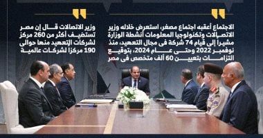 وأوضح المتحدث الرسمي، أن هذا الاجتماع أعقبه اجتماع مصغر، استعرض خلاله وزير الاتصالات وتكنولوجيا المعلومات أنشطة الوزارة، مشيراً في هذا الصدد إلى قيام 74 شركة في مجال التعهيد، منذ نوفمبر 2022 وحتى عام 2024، بتوقيع التزامات بتعيين 60 الف متخصص في مصر، مضيفاً أن مصر تستضيف أكثر من 260مركز لشركات التعهيد منها حوالي 190مركزاً لشركات عالمية.