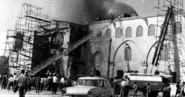 تمر اليوم الذكرى الـ 56 على حريق المسجد الأقصى المبارك فى مشهد مهيب، وذلك بعد إقدام اليهودى المتطرف مايكل دينيس الذى يحمل الجنسية الاسترالية، فى مثل هذا اليوم من عام 1969، باقتحام المسجد الأقصى، وإشعال النيران عمدا فى الجناح الشرقى للمسجد، حيث أتت على واجهاته وسقفه وسجاده وزخارفه النادرة وكل محتوياته من المصاحف والأثاث، وتضرر البناء بشكل كبير، ما تطلب سنوات لإعادة ترميمه وزخرفته كما كان.