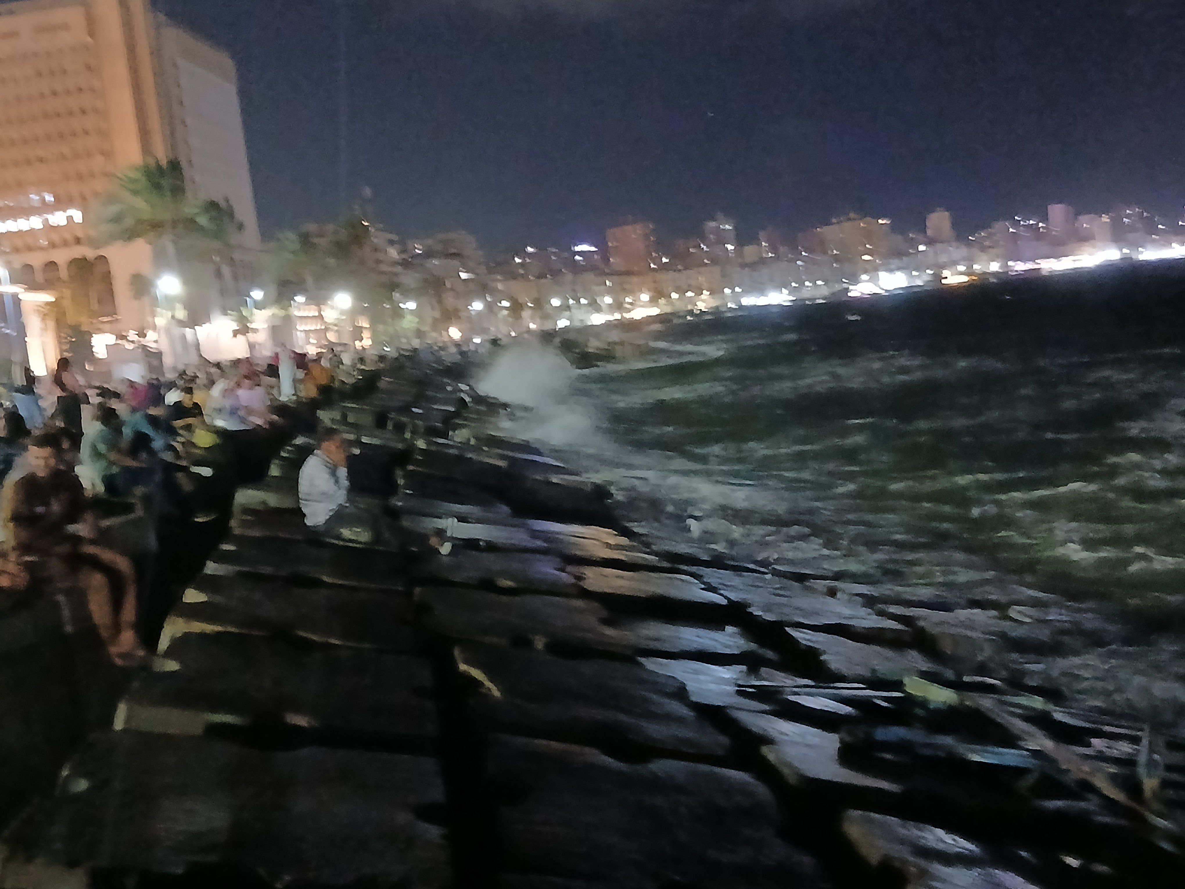 حالة البحر ليلا في الإسكندرية
