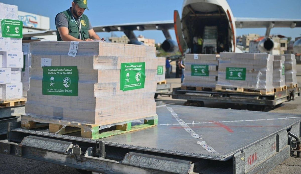 وفي ظل الأزمة الإنسانية التي يمر بها الشعب الفلسطيني الشقيق في قطاع غزة وأزمة المجاعة الكبيرة والوضع المعيشي المتدهور للمدنيين، سيّر المركز جسرًا جويًا وآخر بحريًا مكونًا من (62) طائرة و(8) سفن، حملت (7.552) طنًا من المواد الغذائية والطبية والإيوائية، وتسليم (20) سيارة إسعاف لجمعية الهلال الأحمر الفلسطيني، ووقّع المركز اتفاقيات مع منظمات دولية لتنفيذ مشاريع إغاثية داخل القطاع بقيمة (90) مليونًا و(350) ألف دولار، وتنفيذ عمليات إسقاط جوي لتجاوز إغلاق قوات الاحتلال الإسرائيلي المعابر الحدودية.