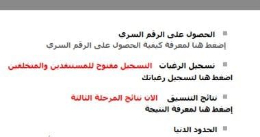 إتاح موقع التنسيق الإلكترونى باب تسجيل الرغبات لطلاب الثانوية العامة المستنفدين للرغبات والمتخلفين عن التقدم، وذلك لإدخال الرغبات من جديد حتى يتمكن مكتب التنسيق من ترشيح الطلاب للكليات الجامعية والمعاهد، ويمكن للطلاب تسجيل الرغبات بالضغط هنا.