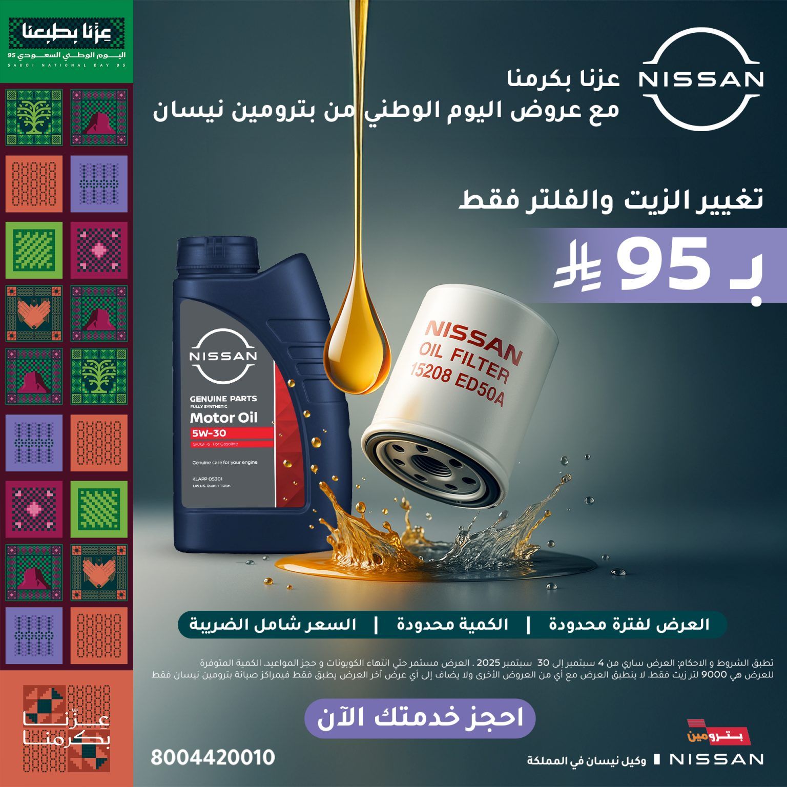 - الخدمة المقدمة: تغيير الزيت والفلتر الأصلي من نيسان
