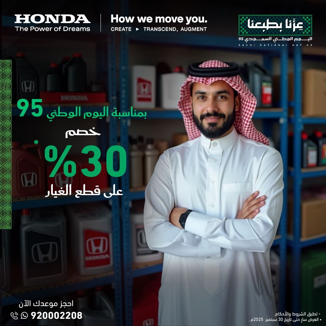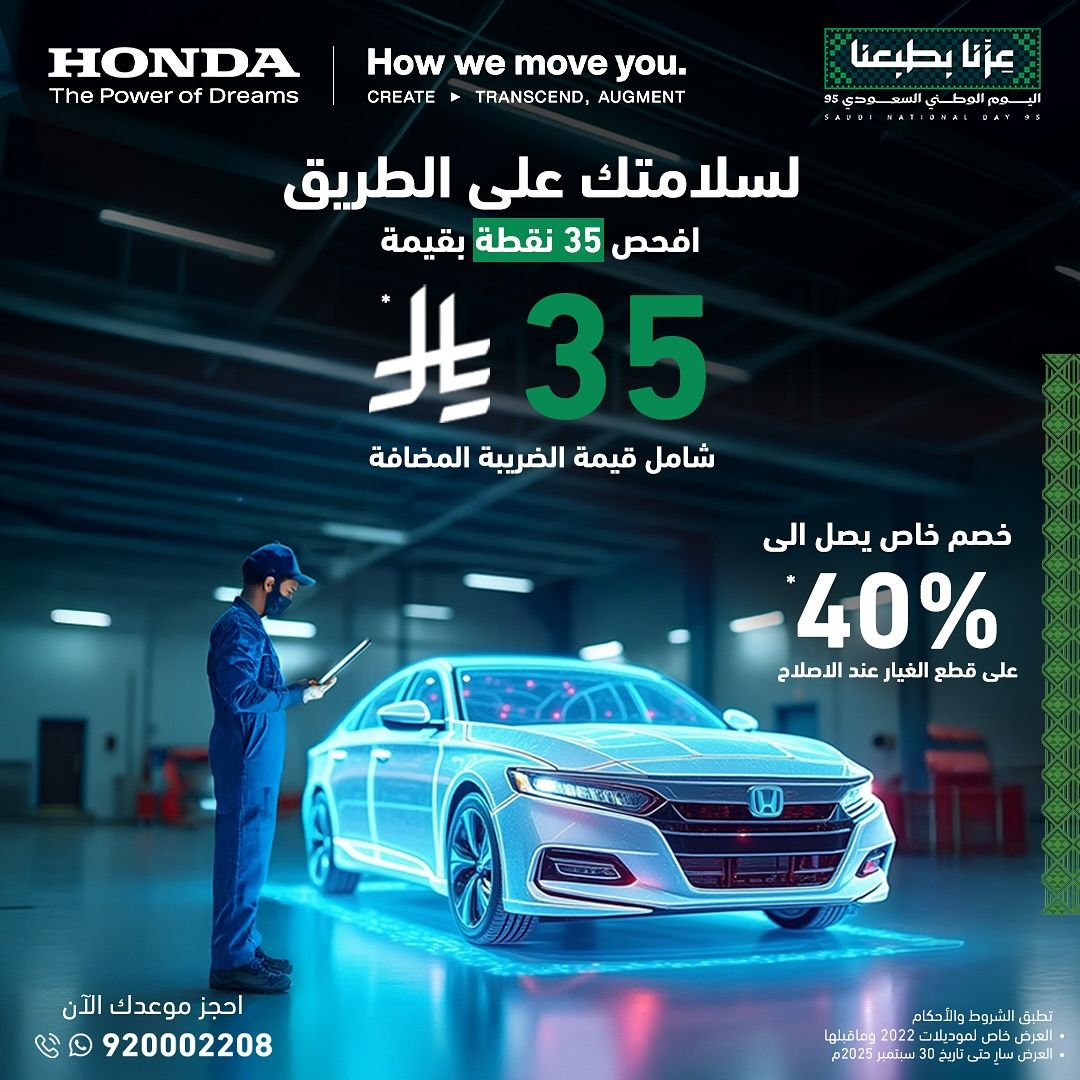 عروض حصرية من هوندا السعودية – اشترِ الآن واطمئن على سيارتك