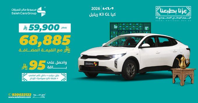 - السعر مع ضريبة القيمة المضافة: 68,885 ريال سعودي ضمن عرض اليوم الوطني