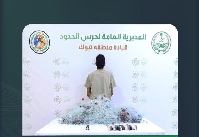 ضبطت الدوريات الساحلية لحرس الحدود في حقل بمنطقة تبوك، مواطنًا مخالفًا للائحة الأمن والسلامة لمزاولي الأنشطة البحرية في المناطق البحرية للمملكة العربية السعودية، وذلك لممارسته الصيد دون تصريح، وبحوزته أسماك مصيدة، وتم اتخاذ الإجراءات النظامية بحقه بالتنسيق مع الجهات المختصة.