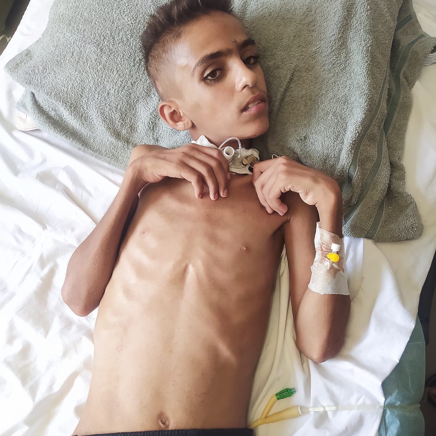 في مشهد مؤلم يلخص جانبًا من المأساة الإنسانية في غزة، يرقد الطفل حلمي بربخ، صاحب الـ 15 عاما على سريره في مجمع ناصر الطبي بالقطاع، يعاني من شلل رباعي وسوء تغذية حاد بعد إصابته برصاص الجيش الإسرائيلي في الرأس، ما تسبب في تدهور خطير لحالته الصحية ودخوله في غيبوبة طويلة استمرت أكثر من 47 يوما داخل قسم العناية المكثفة.
