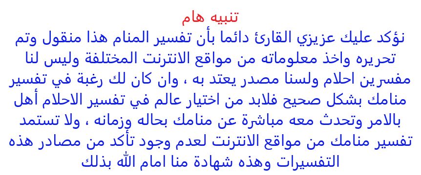 ملحوظة: مضمون هذا الخبر تم كتابته بواسطة ابن سيرين ولا يعبر عن وجهة نظر مصر اليوم وانما تم نقله بمحتواه كما هو من ابن سيرين ونحن غير مسئولين عن محتوى الخبر والعهدة علي المصدر السابق ذكرة.