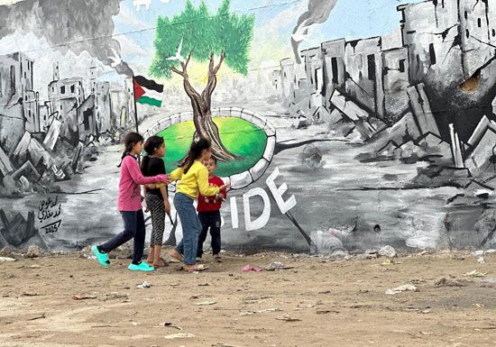 نقلت وكالة الأنباء الفلسطينية وفا تقريرا مصورا من دينة خان يونس تبرز الجدارية التى تشكل معانانة الشعب الفلسطين وتدمير المناخ نتيجة القصف الذى طال قطاع غزة لمدة سنين