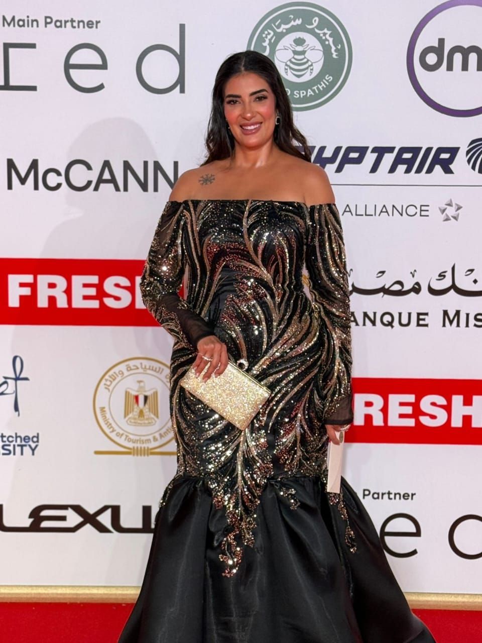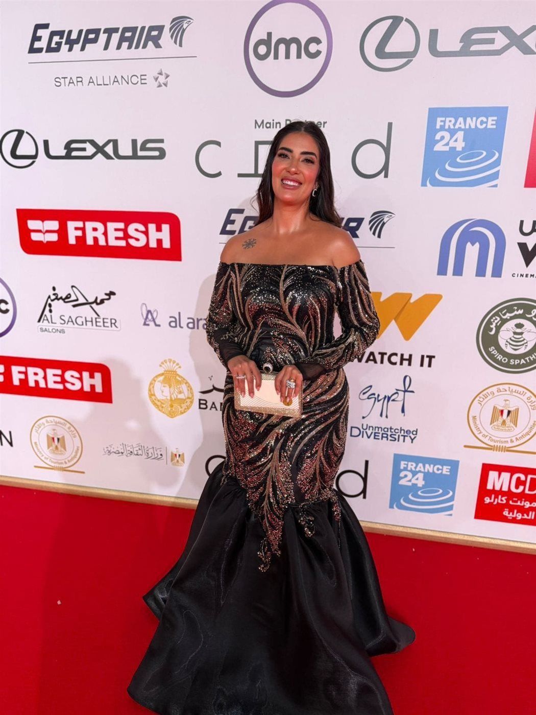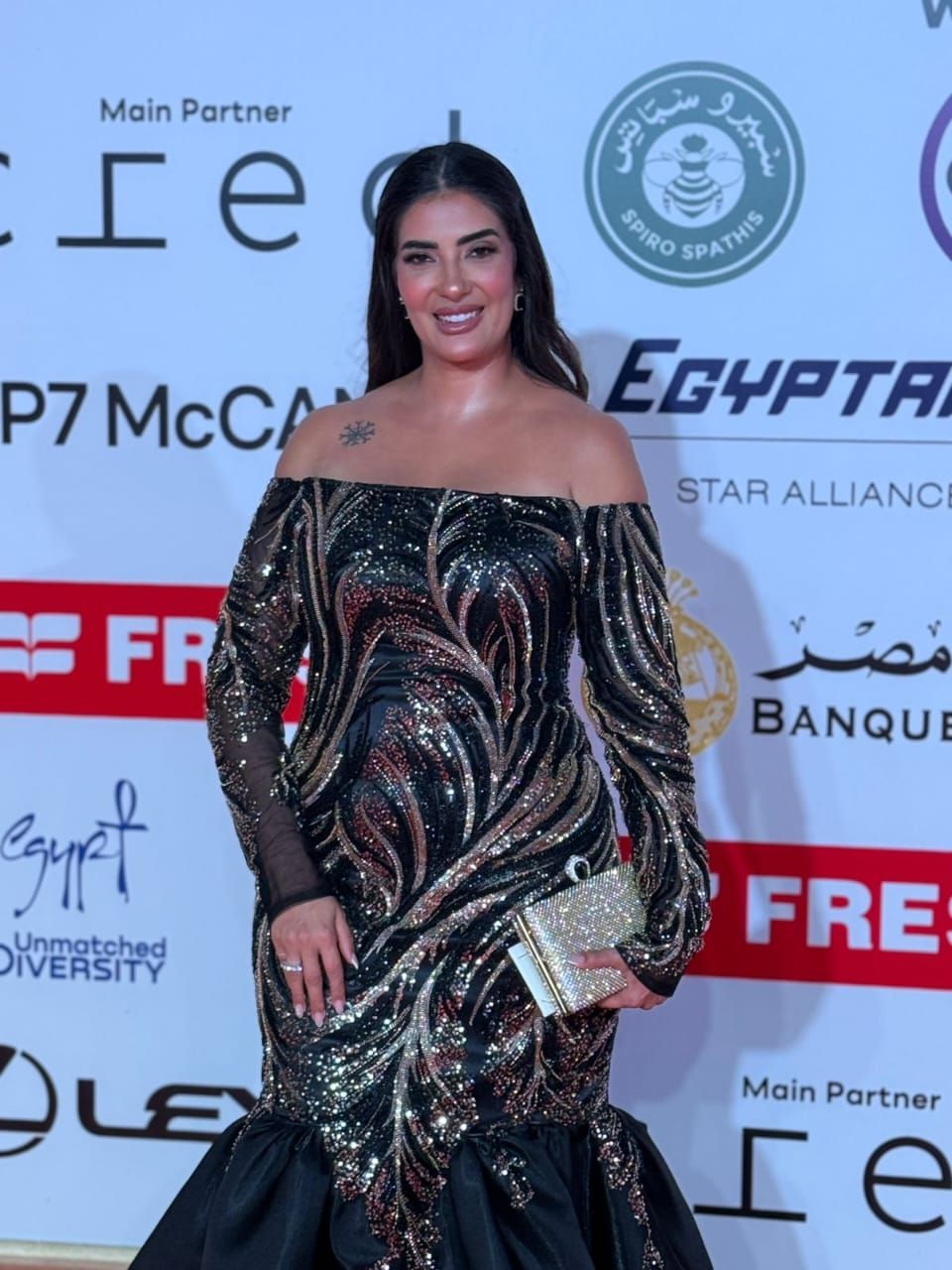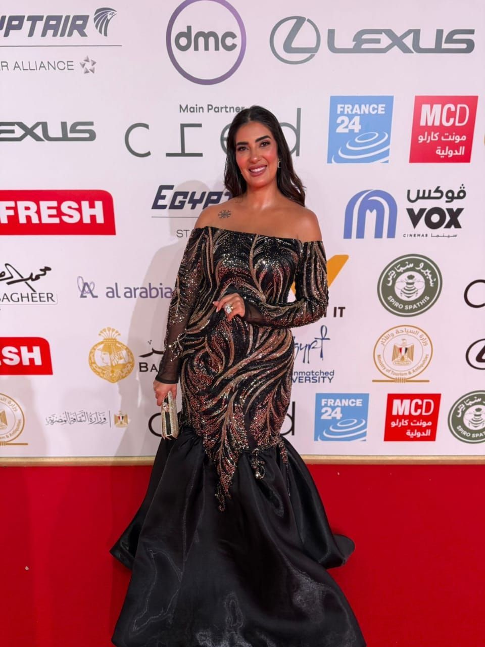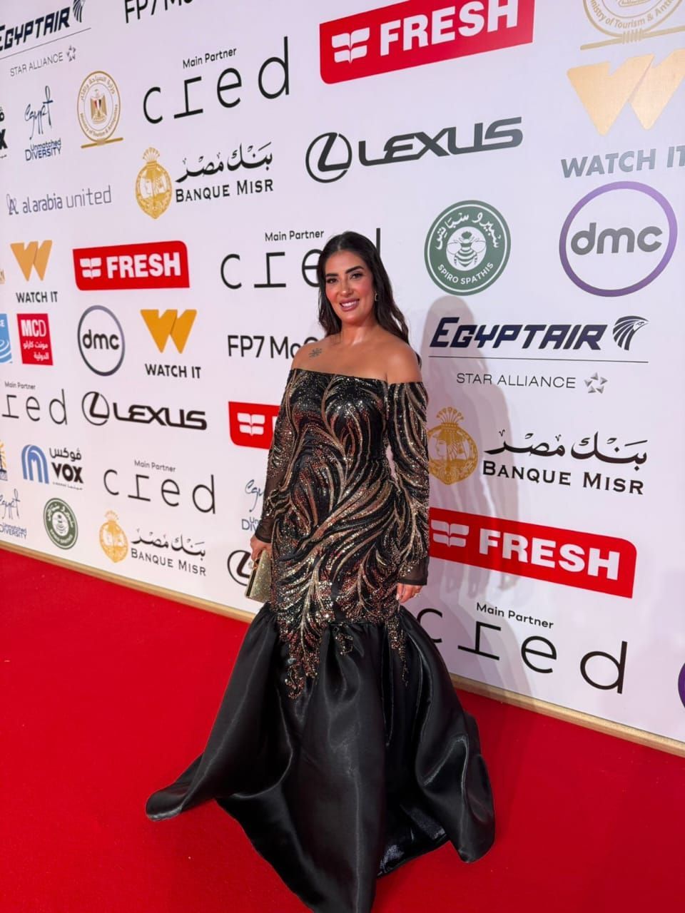 وخطفت بسنت النبراوي الأنظار بإطلالتها الراقية على السجادة الحمراء، حيث حرصت على اختيار إطلالة تجمع بين الأناقة والبساطة، لتكون واحدة من أبرز النجمات اللاتي لفتن الأنظار في حفل الافتتاح.