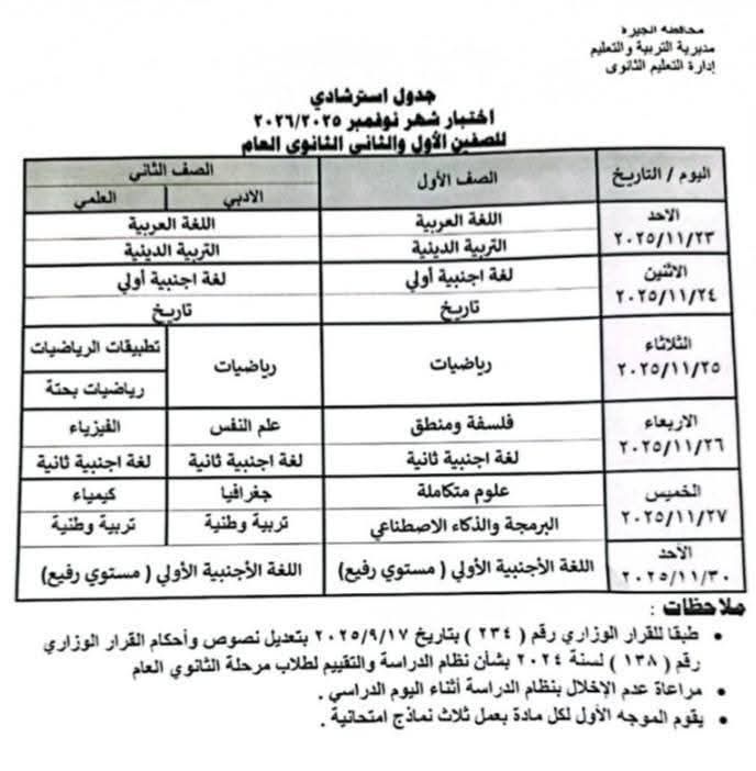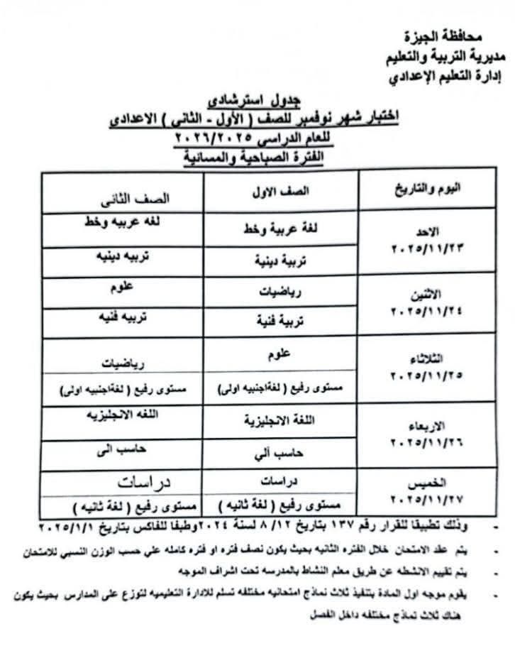 وأكدت وزارة التربية والتعليم أنها لن تصدر جدولًا مركزيًا موحدًا لامتحانات شهر نوفمبر على مستوى الجمهورية، موضحة أن إعداد الجداول وإعلانها مسؤولية المديريات والإدارات التعليمية والمدارس، مع الالتزام بالموعد الرسمي لبدء الامتحانات.