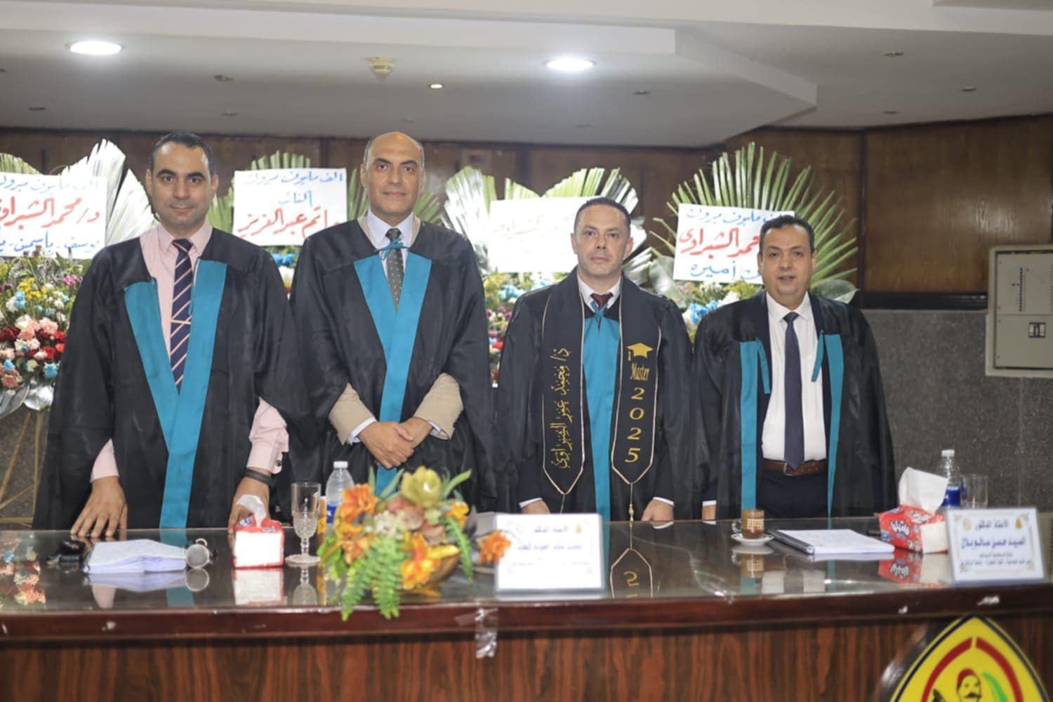 الباحث محمد عمر الشبراوى مع لجنة المناقشة