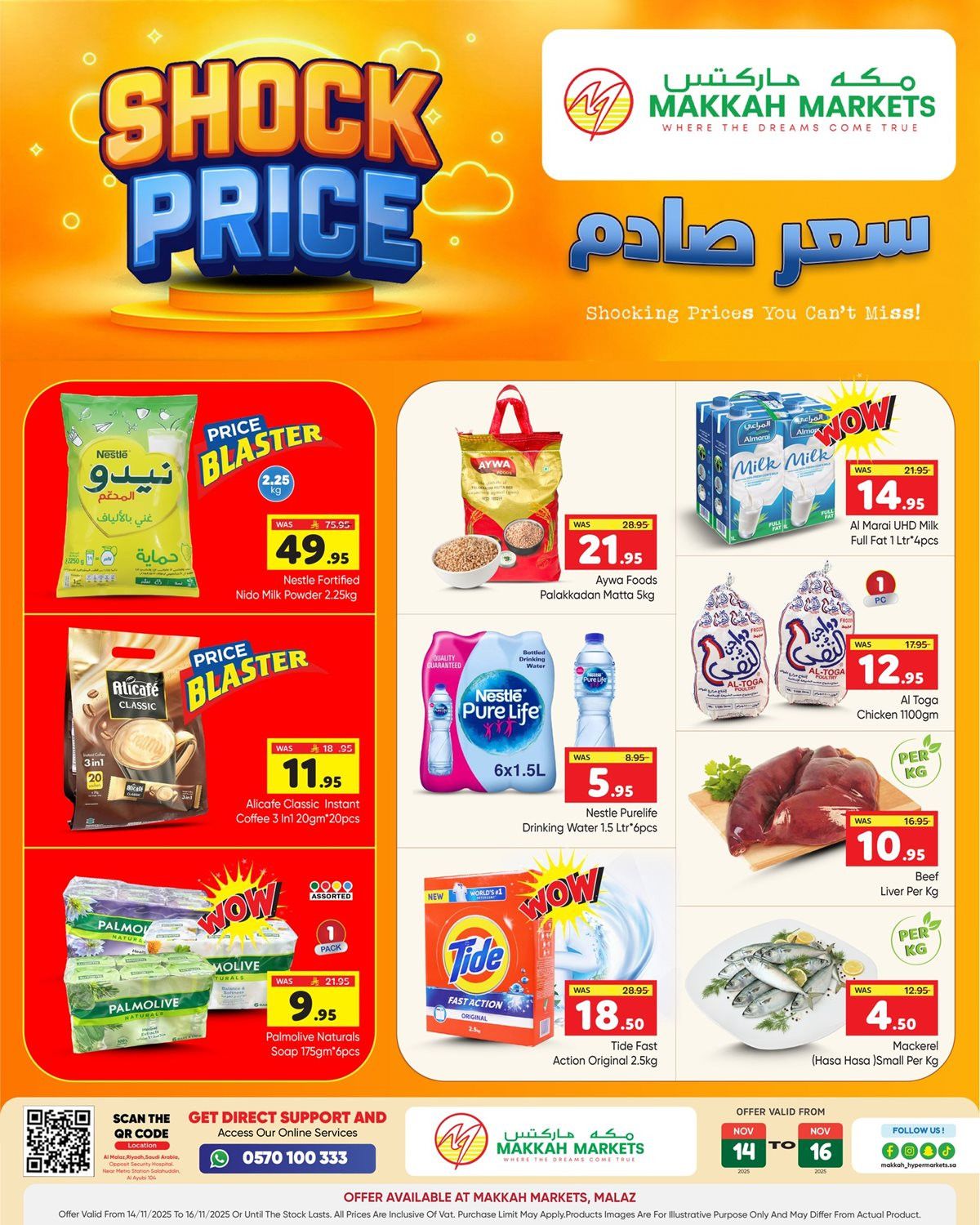 نقدم لكم احدث عروض مكة هايبر ماركت بتاريخ الجمعة 14-11-2025 و بتشمل علي اللحوم والدواجن والأسماك بأنواعها المتنوعة بالإضافة إلى الخضروات والفواكه الطازجة و تشمل أيضا مجموعة واسعة من المنتجات الغذائية المعلبة والمشروبات بأنواعها إضافة إلى أدوات المنزل والأجهزة المتنوعة باقل الاسعار