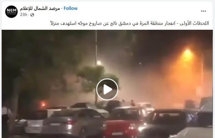 جاء تداول الفيديو مصحوبًا بوصف يقول: "اللحظات الأولى - انفجار منطقة المزة في دمشق ناتج عن صاروخ موجّه استهدف منزلاً".
