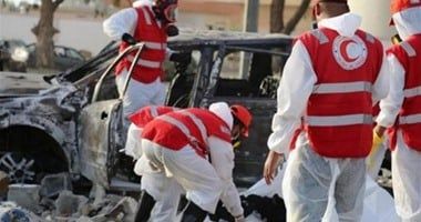 وأظهرت صور نشرها الهلال الأحمر بالخمس صفا من الجثث في أكياس بلاستيكية سوداء ملقاة على الأرض، بينما شوهد المتطوعون وهم يقدمون إسعافات أولية للناجين.