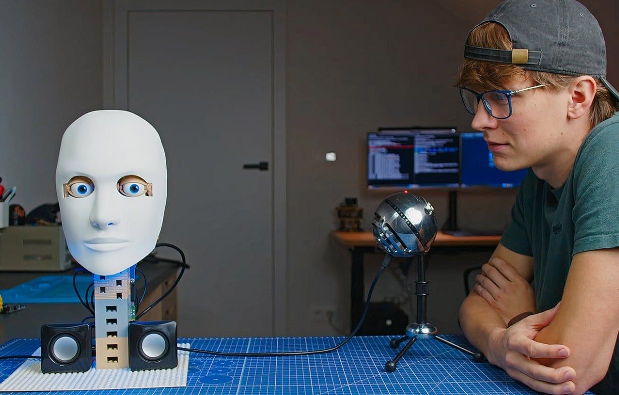 لعدم رغبته فى قضاء وقت طويل فى نحت الوجه رقميا، لجأ بارتنيك إلى قناع جاهز للطباعة ثلاثية الأبعاد أجراه ببعض التعديلات، مثل قص محجرى العينين ليمنح الروبوت مظهرا فلسفيا عميقا، التصميم محكم، يُخفى المكونات الداخلية مع السماح للضوء بالمرور عبر الفم، ليبدو الروبوت وكأنه يتحدث حقا، يلتقط الميكروفون المدمج على Raspberry Pi صوت المستخدم، ويحوله إلى نص يُرسل إلى حاسوب بارتنيك عبر شبكة واى فاى، حيث يتولى نموذج Google “Gemman 3” توليد الردود بصوت مبرمج عبر خدمة ElevenLabs، أما الإضاءة خلف الفم، فهى عبارة عن حلقة من مصابيح LED قابلة للبرمجة تومض مع كل كلمة تصدر عن الروبوت.