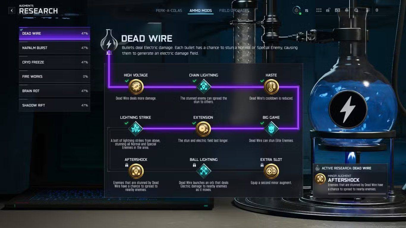 يُعد Dead Wire واحدًا من أقوى Ammo Mods التي يمكن استخدامها في طور الزومبي، لأنه يتيح للاعب صعق الحشود الكهربائية والتسبب في ضرر متسلسل يمرّ عبر مجموعات الزومبي بكفاءة عالية. هذا التعديل يخلق تأثيرًا كهربائيًا ينتشر بسرعة بين الأعداء، مما يجعله خيارًا مثاليًا للاعبين الذين يعتمدون على “تجميع الزومبي” في خط واحد ثم القضاء عليهم دفعة واحدة. ومع استخدام الـ Augments المناسبة يمكن تحويل Dead Wire من تعديل قوي إلى أداة فتاكة قادرة على تنظيف الممرات وإضعاف الأعداء في الجولات المتقدمة.
