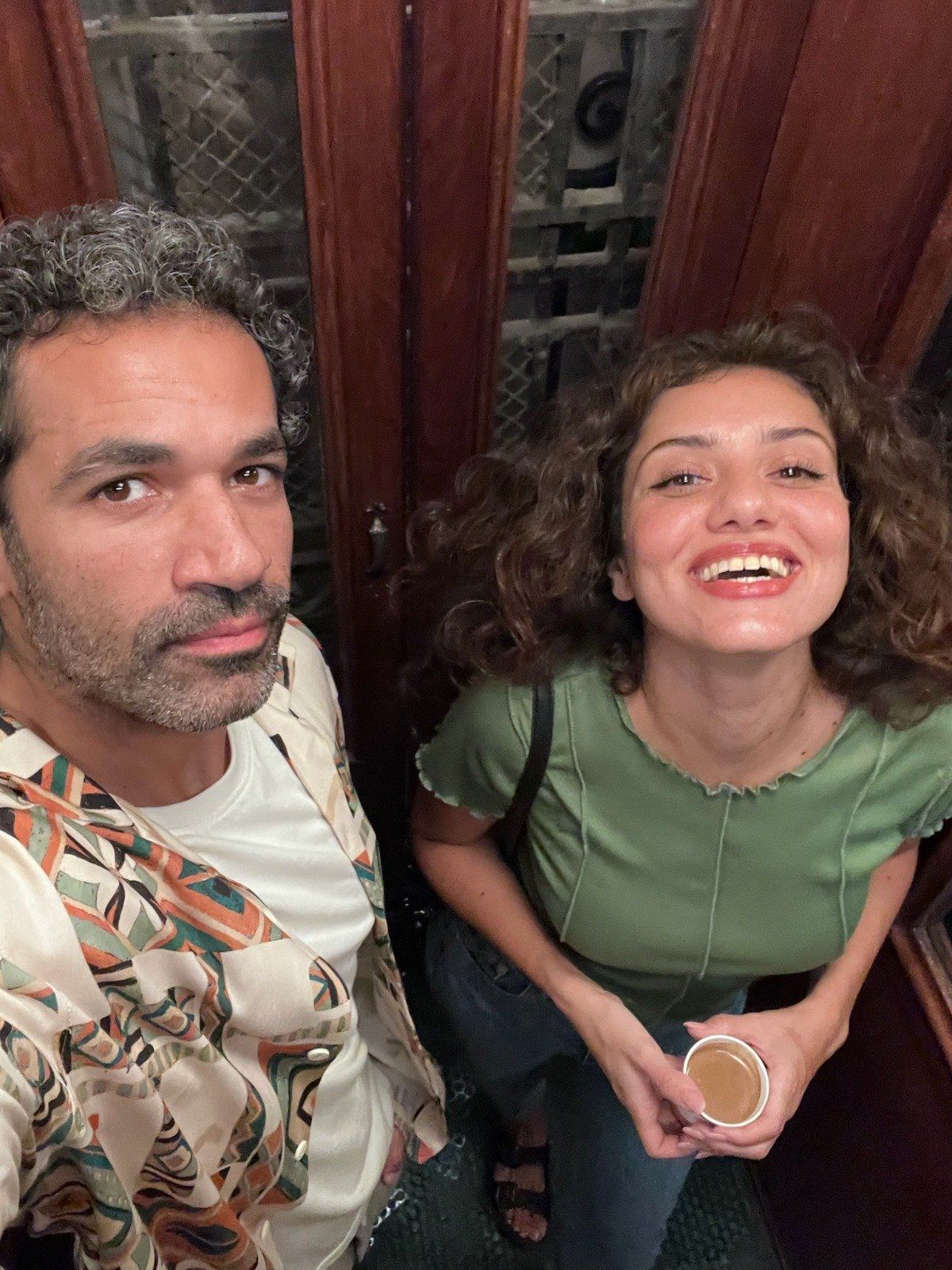صدقى صخر وجيهان الشماشرجي فى كواليس فيلم قفلة