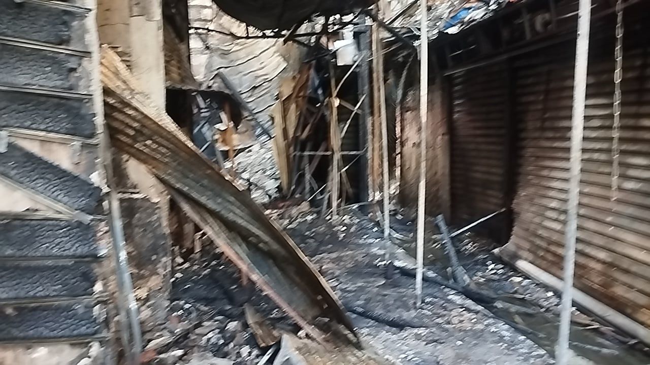 النيران التهمت المحلات في حريق المنشية بالإسكندرية