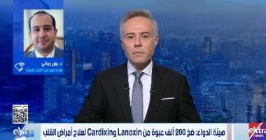 الثلاثاء، 18 نوفمبر 2025 11:46 مكشف الدكتور يس رجائي، مساعد رئيس هيئة الدواء المصرية خلال مداخلة هاتفية مع برنامج ستوديو إكسترا على قناة إكسترا نيوز، عن الإجراءات التي تم اتخاذها لمواجهة نقص دواء القلب "ديجوكسين" في السوق المصري.