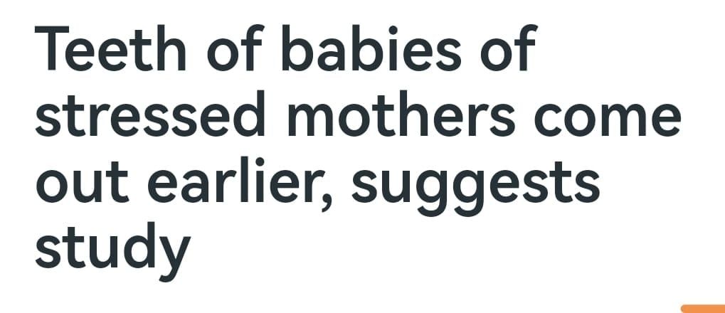 الأهم من ذلك، أن النساء اللواتي لديهن مستويات أعلى من هرمون التوتر الكورتيزول في لعابهن أنجبن أطفالًا لديهم عدد أكبر من الأسنان البارزة بحلول عمر ستة أشهر، وبهذه الطريقة، كان لدى أطفال الأمهات ذوات أعلى مستوى من الكورتيزول في المتوسط أربعة أسنان إضافية في هذا العمر مقارنةً بأطفال الأمهات ذوات أدنى مستويات الكورتيزول.