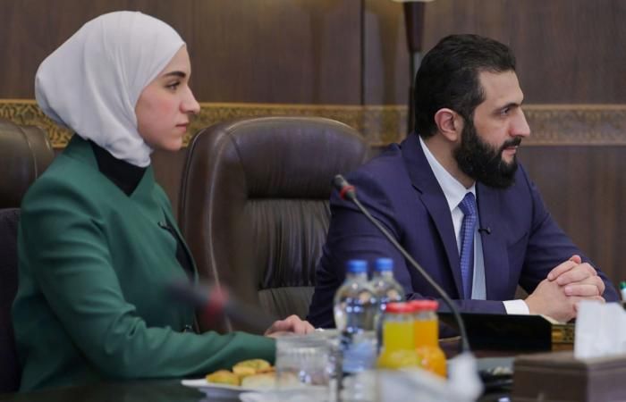 belbalady .. حركة من أحمد الشرع مع زوجة لطيفة الدروبي تشعل تفاعلا بلقاء رسمي
