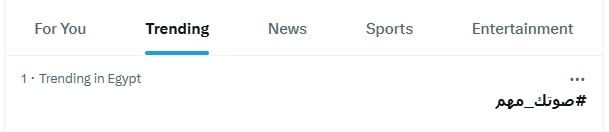 تصدر هاشتاج صوتك مهم، تريندات منصة X في مصر، الذى عبر من خلاله المواطنون عن حرصهم على المشاركة في المرحلة الثانية من انتخابات مجلس النواب التي تجري على مدار يومي الاثنين والثلاثاء 24 و25 نوفمبر الجاري، ليعكس الشعب المصري وعيه واهتمامه بأداء حقه الدستوري في اختيار من يمثله تحت قبة البرلمان.
