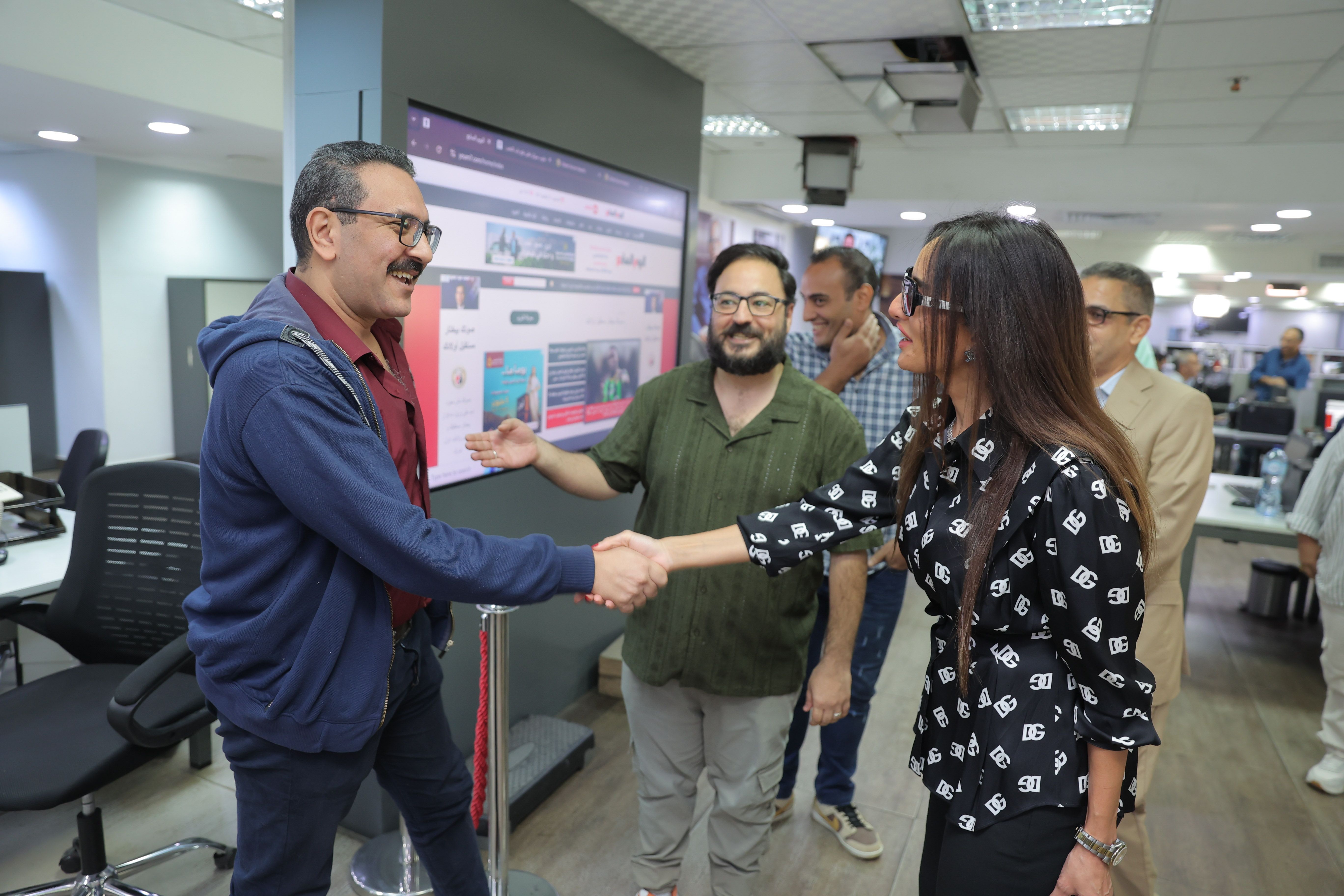 زينة تتفقد صالة تحرير اليوم السابع