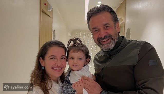 كريم عبدالعزيز يداعب حفيدة أصالة في طريف وظهور نادر لزوجته