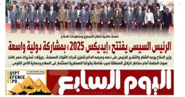 تنشر اليوم السابع فى عددها الصادر غدا، تفاصيل هامة حول العديد من الأحداث الجارية على الساحتين الداخلية والخارجية: الرئيس السيسى يفتتح «إيديكس 2025» بمشاركة دولية واسعة