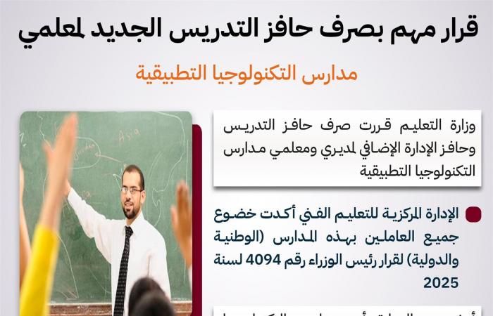 قرار مهم بصرف حافز التدريس الجديد لمعلمي مدارس التكنولوجيا التطبيقية