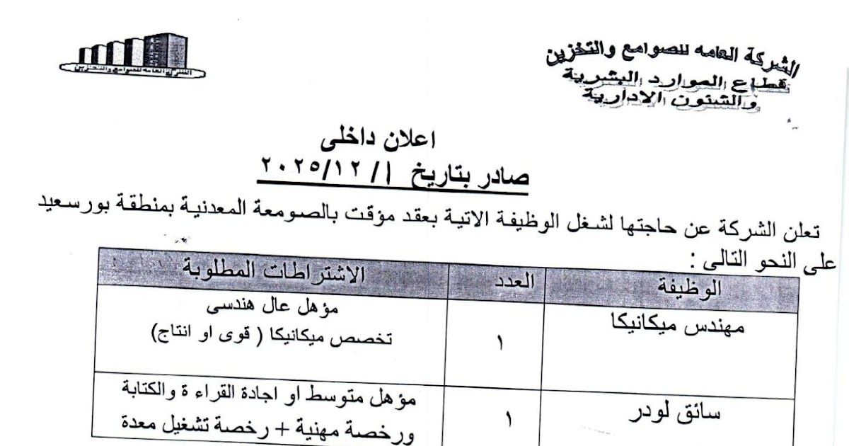 اعلان توظيف الشركة القابضة للصوامع والتخزين التابعة لوزارة التموين المصرية وظائف للمؤهلات المتوسطة والعليا
