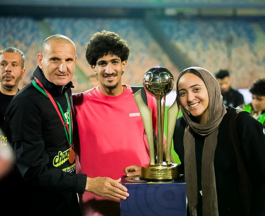 السبت، 06 ديسمبر 2025 05:46 ماحتفل طارق سليمان، مدرب حراس مرمي أهلي طرابلس الليبي، بالتتويج بكأس ليبيا مع أسرته فى استاد القاهرة بعد الفوز المستحق على أهلي بنيغازي في نهأئي الكأس الذي أقيم باستاد القاهرة.