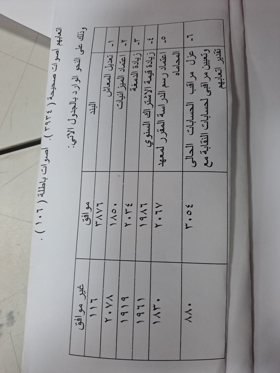 بند اعتماد رسم الدراسة الموافق 2067 صوتا، وغير الموافق 1830 صوتا.