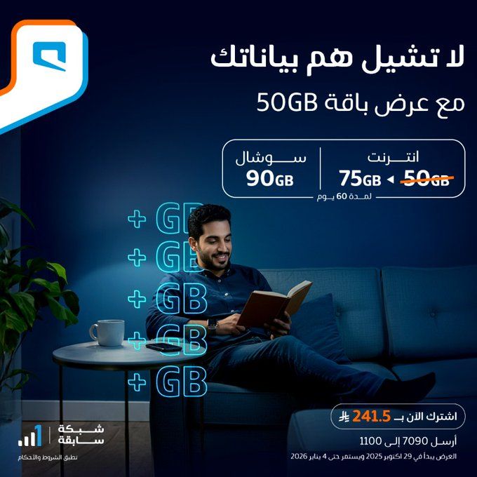 عرض باقة 50GB من موبايلي السعودية ما تشيل هم بياناتك استفيدوا من افضل العروض القوية من موبايلي و استمتعوا بأفضل تجربة