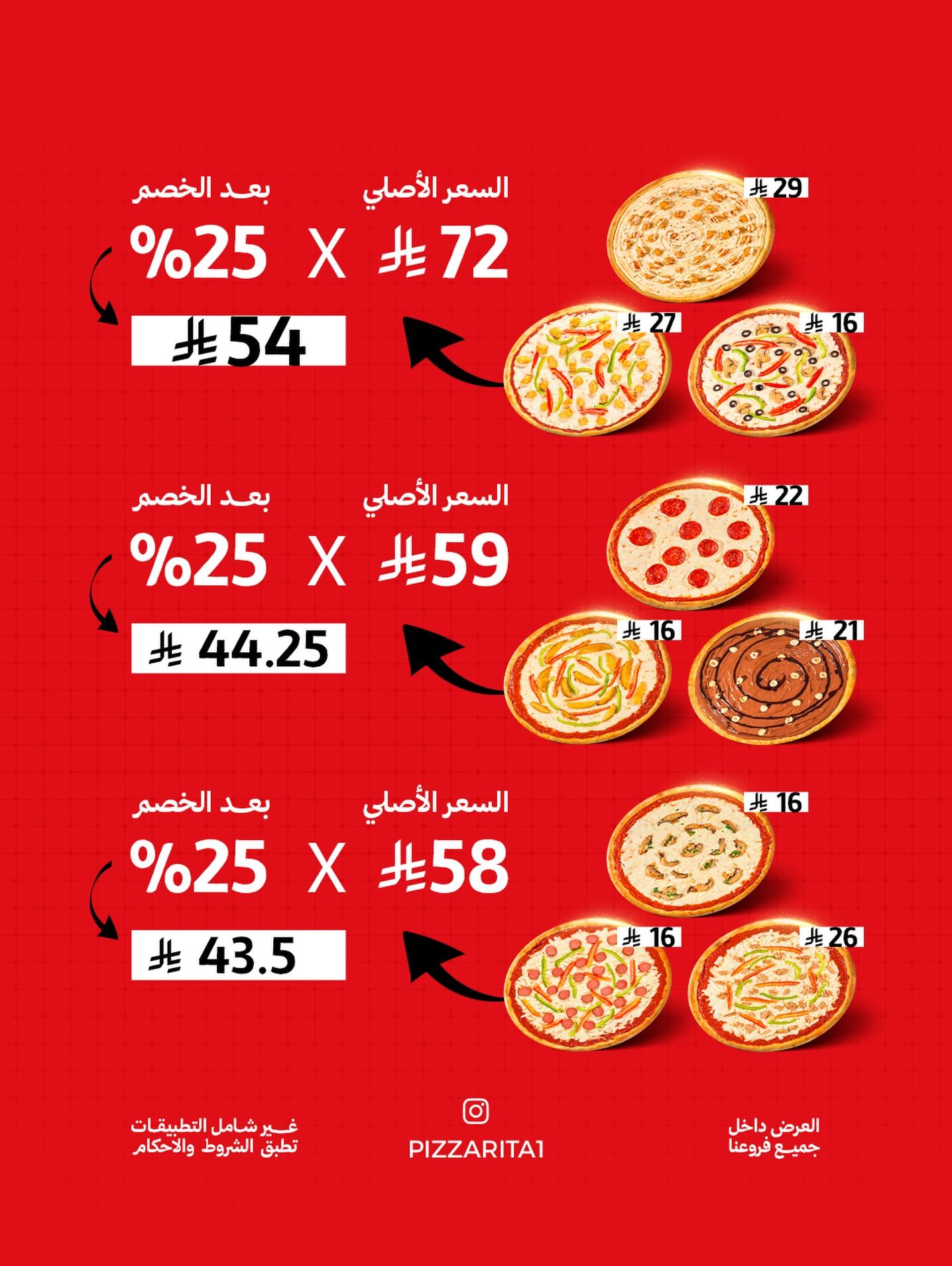مطعم بيتزا ريتا لنهاية العام حتي الاربعاء 31-12-2025 | خصم 25% علي الفاتورة