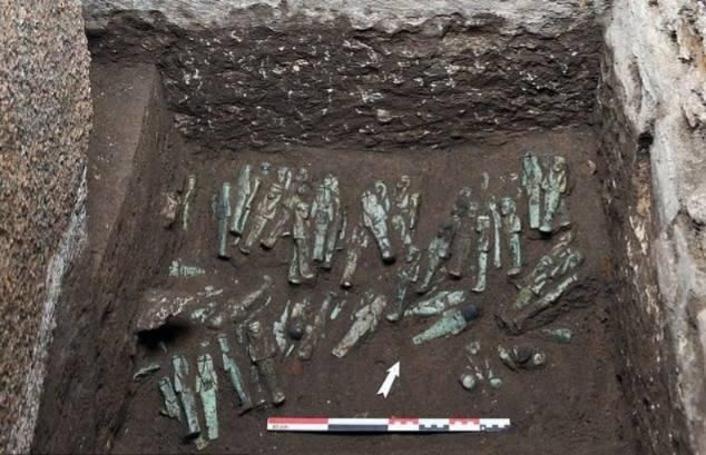 وقد تم ترتيب التماثيل في صفوف أفقية متقنة وعلى شكل نجمة، ما يشير إلى تصميم شعائري متعمد لم يُمس لأكثر من 3000 سنة.
