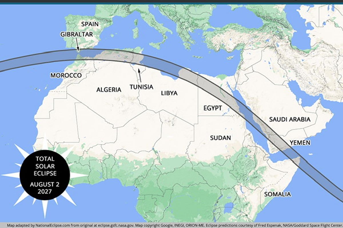 أعلنت وكالة ناسا الأمريكية ان المملكة ستشهد حدث فلكي استثنائي سيجعلها إحدى أبرز نقاط المراقبة عالميًا، حيث يمر مسار أطول كسوف كلي للشمس في القرن الحالي فوق عدد من مناطقها يوم 2 أغسطس 2027، في ظاهرة لن تتكرر قبل عام 2114 وفق وكالة “ناسا”.