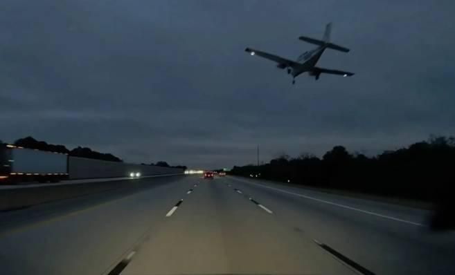 وتظهر لقطات الطائرة وهي تهبط اضطرارياً على الطريق المزدحم خلال ساعة الذروة، حيث صدمت مؤخرة السيارة ثم ارتدت إلى يسارها محدثة شرارات.