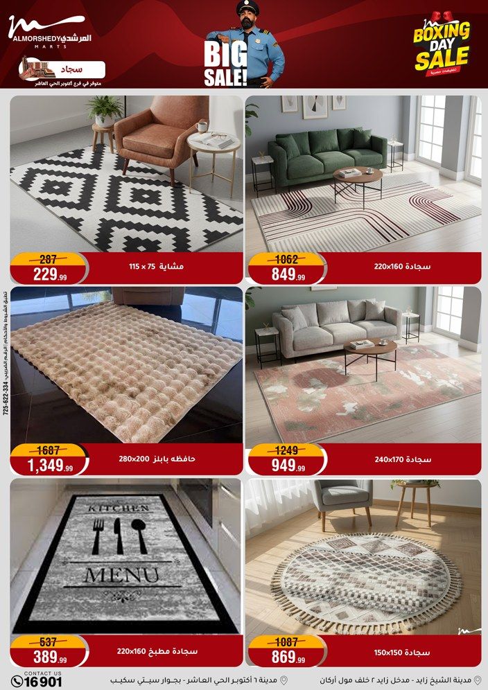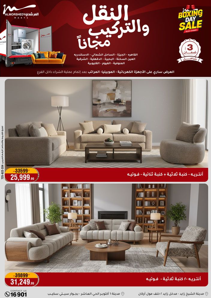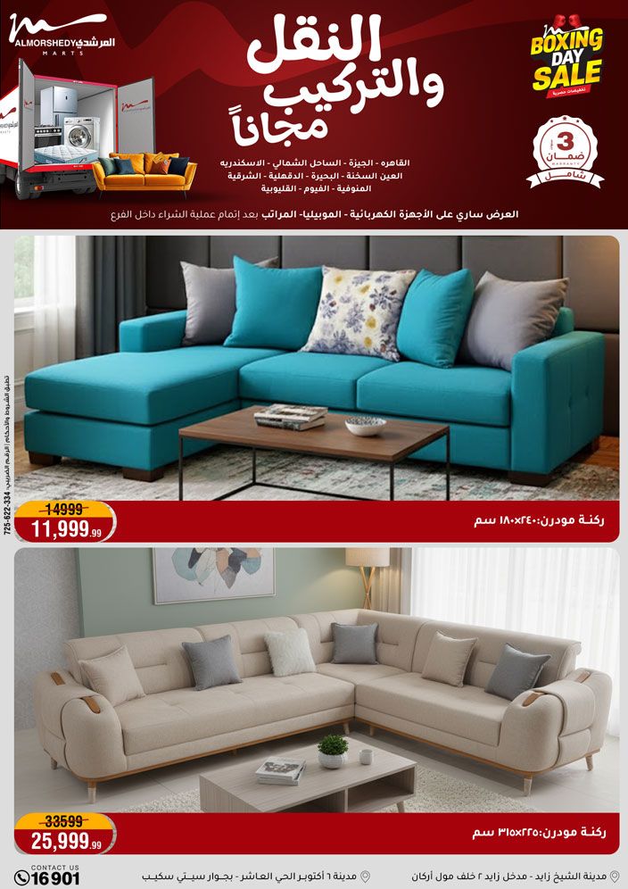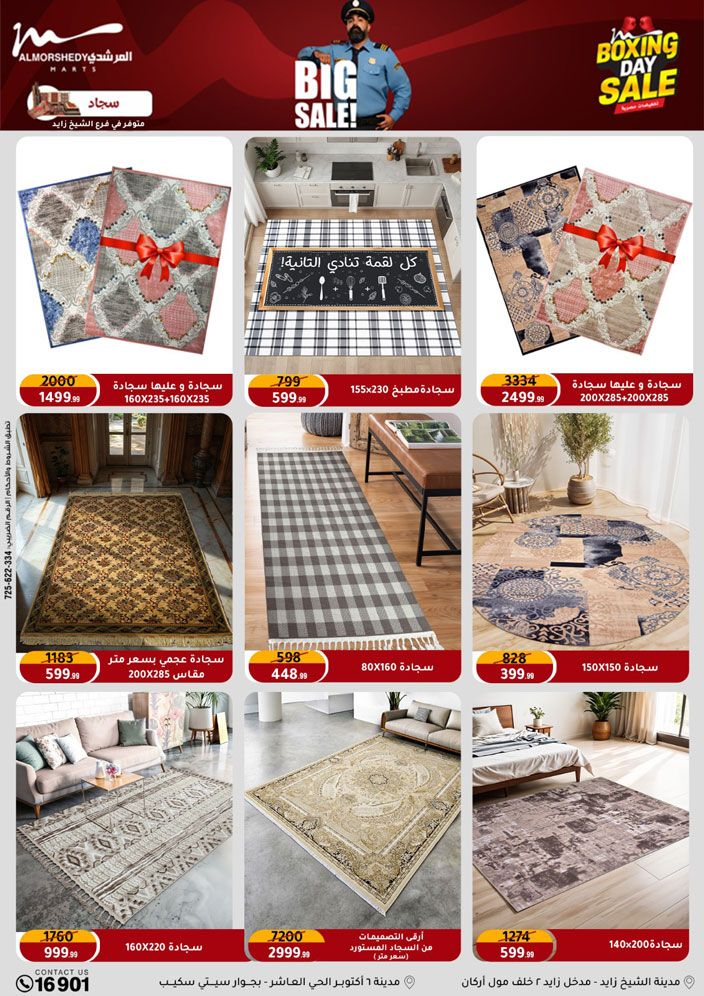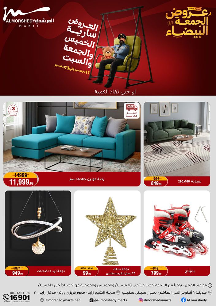عروض جديدة من أسواق المرشدي مع اكبر مهرجان للتخفيضات في مصر خصومات حتى 70% وقسط براحتك بدون فوائد بأسعار العروض المخفضة على 12 شهر لحاملي بطاقة ائتمان CIB أو قسط براحتك مع VALU بدون مقدم حتى 60 شهر أو بدون مقدم وبدون فوائد مع نظام هاتريك وكمان النقل مجاني للقاهرة والجيزة والقليوبية على قسم الأجهزة الكهربائية والموبيليا والمراتب ( تطبق شروط المكان ) خصومات على جميع الأقسام أدوات منزلية – اجهزة كهربائية – مفروشات – موبيليا – نجف – سجاد – مراتب – ملابس رجالي وحريمي وأطفالي ومستلزمات ولعب الأطفال وجاليري وأقسام تانية كتير استمتع بالتسوق في أسواق المرشدي مع أكتر من 12 قسم و أكثر من 10,000 منتج يعني كل اللي بتحلم بيه عند المرشدي هتلاقيه